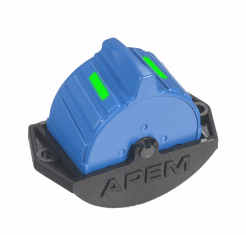APEM ajoute à la série HR deux ouvertures lumineuses faites par dégravage laser afin de fournir une information supplémentaire sur l’état de fonctionnement du véhicule ou de la commande. Cette possibilité d’éclairage permet à son conducteur d’optenir un retour visuel en plus d’un retour haptique, ce qui sécurise son utilisation.