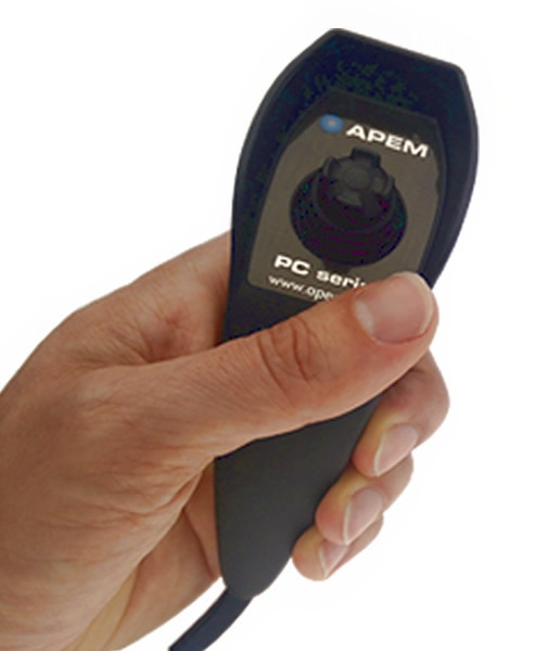 The PC series is lightweight, operable with one hand, and accommodates APEM’s TS series miniature proportional joysticks and I series pushbutton switches.